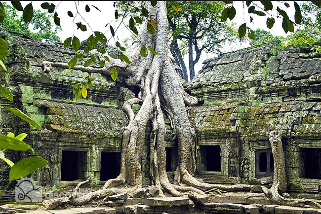 CambodiaAt first, Angkor Wat was to worship the Hindu God Visnu. Later, when the Khmer kingdom followed the Buddhism, it has become a Buddhist temple. Angkor Wat had been covered by jungle, so you will fell an ancient and mysterious atmosphere when visit its some temples under the trees.