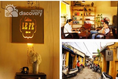Situated deep in alley on Phan Chu Trinh Street, LE Fe cafeteria is highlighted by its faded wooden signboard. Stepping into the café, you may feel a peaceful and spacious space inside. There are three areas in this café shop. While the first and third areas are the open space, with trees and natural light, the middle section is to display decorative objects of old style, including books, old TVs, and fixed phones. A former famous singer My Phuong is the owner of LE Fe Cafeteria. At weekends, there are always fantastic music shows, which attracting a majority The shop’s owner is singer My Phuong, who used to be very famous in Hoi An. The shop’s weekend music shows always attract many people. |
